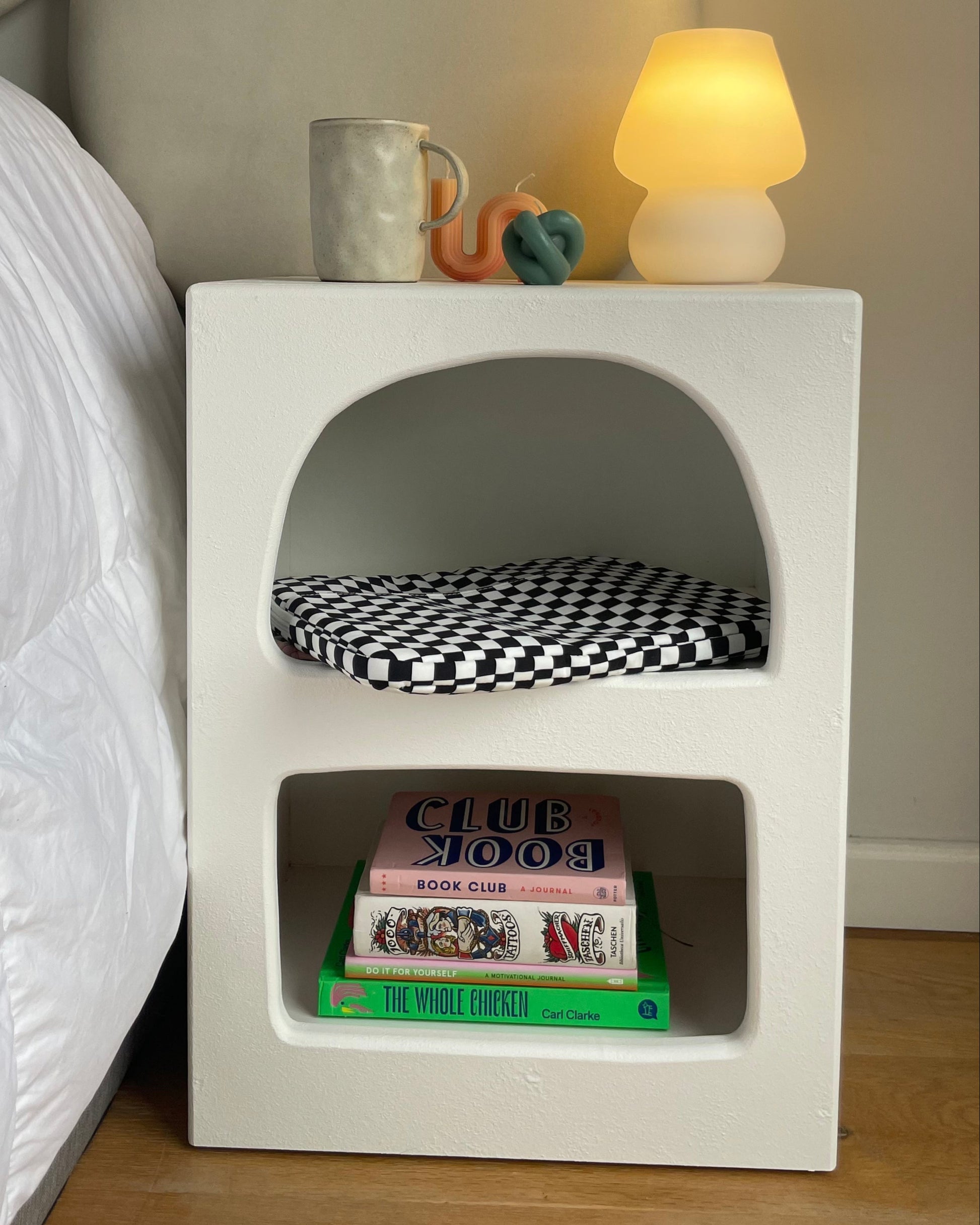 Mesa de nichos orgánicos e irregulares. Ideal para mesas de luz o de arribo en el living
